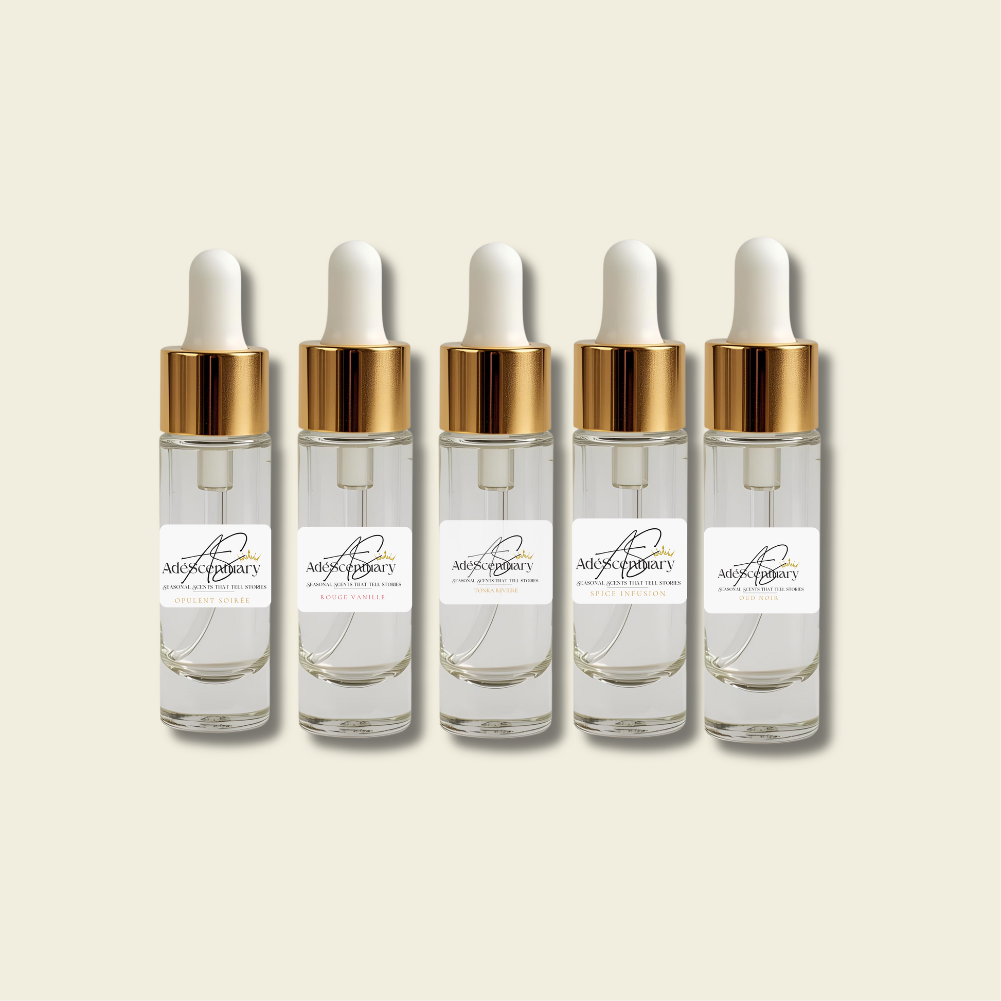 Each perfume oil is housed in a 3ml glass dropper bottle, ideal for precise application and scent layering. Whether you're sampling for yourself or gifting seasonal fragrance, this set is the perfect way to experience AdeScentuary’s Autumn collection.
